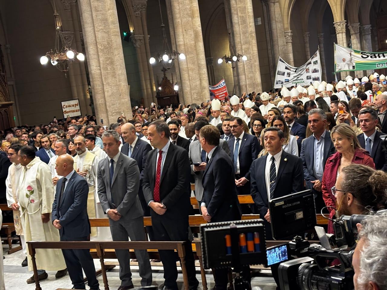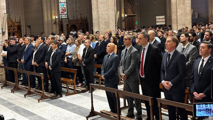 La ceremonia comenzó pasadas las 17 horas. En la primera fila de la Basílica se sentaron el jefe de Gabinete, Manuel Adorni, el ministro del Interior, Diego Santilli, y el presidente de la Cámara de Diputados, Martín Menem.