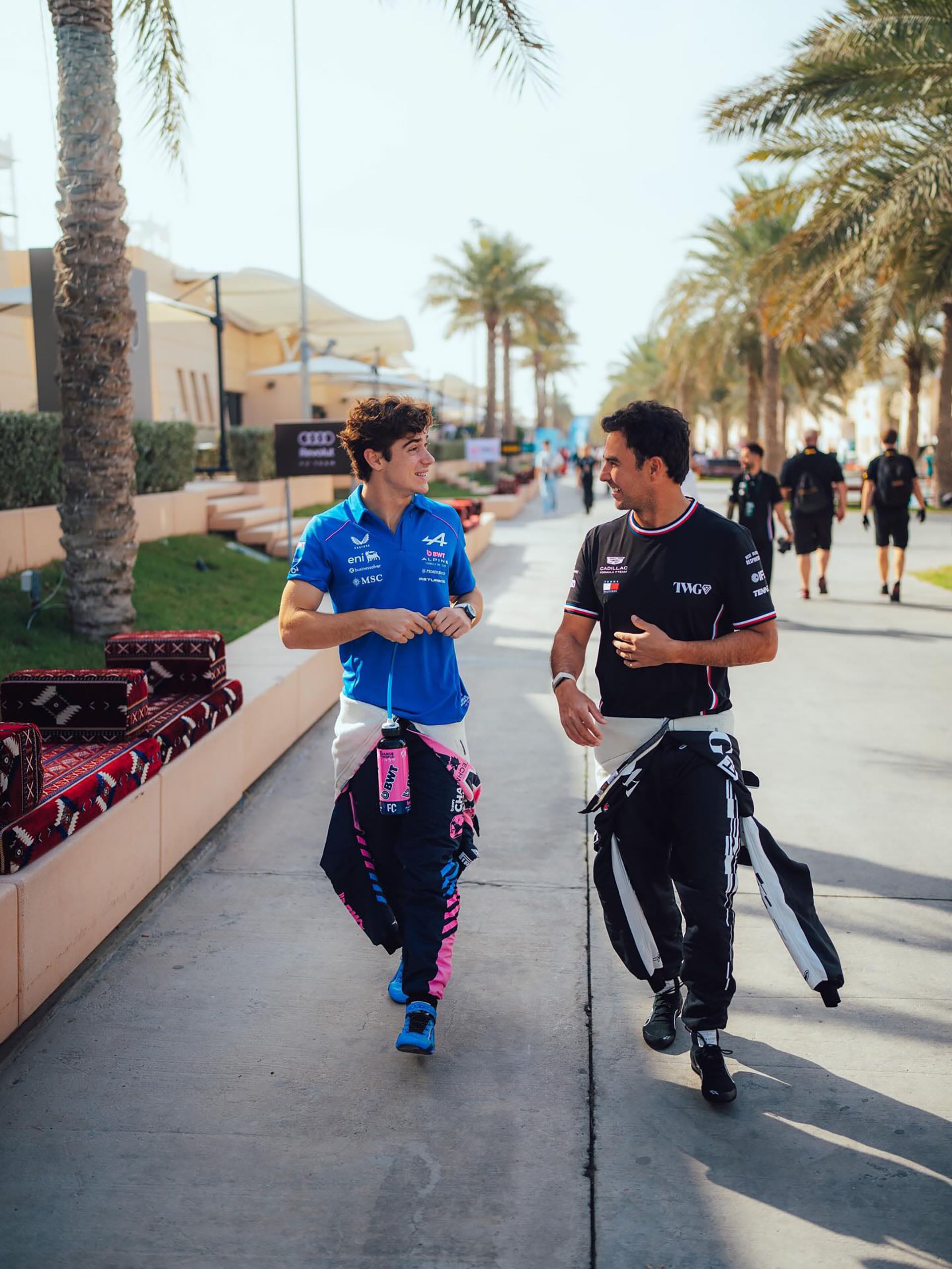 Colapinto con Checo Pérez en los test de la F1 en Bahréin (@alpinef1team)