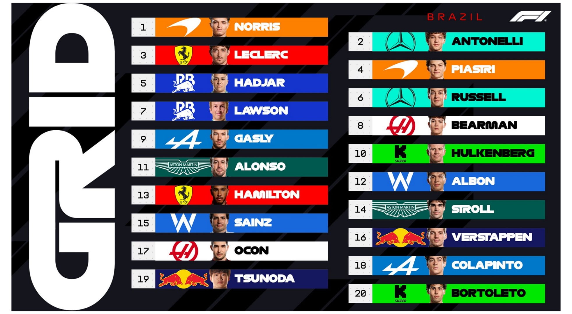 La grilla de largada del GP de Brasil 2025: