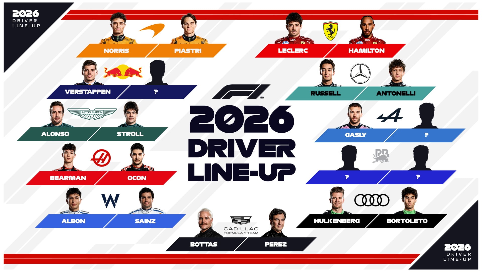 Así está la grilla de pilotos para el 2026 (Foto: @F1)