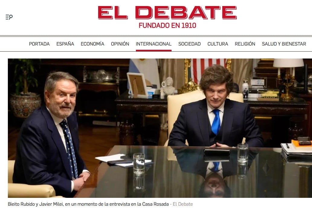 Javier Milei brindó una entrevista al medio español El Debate, en la Casa Rosada