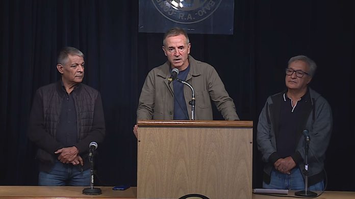 Tras una reunión del Consejo Directivo Nacional de la central gremial, el triunvirato se paró delante de los periodistas y Sola se plantó frente al micrófono. “Hicimos un profundo análisis de la realidad sociolaboral y económica que está atravesando nuestro país. Como es noticia en cada uno de los medios, cada una de las actividades estamos atravesando una fuerte pérdida del poder adquisitivo, ya sea en la formalidad o la informalidad, o los monotributistas. El endeudamiento familiar ha aumentado, hay pérdida constante de trabajadores y crecimiento del desempleo”, comenzó su discurso el representante del sector de Seguros. Lo escoltaron sus compañeros Cristian Jerónimo, del sindicato del Vidrio, y Octavio Argüello, de Camioneros.