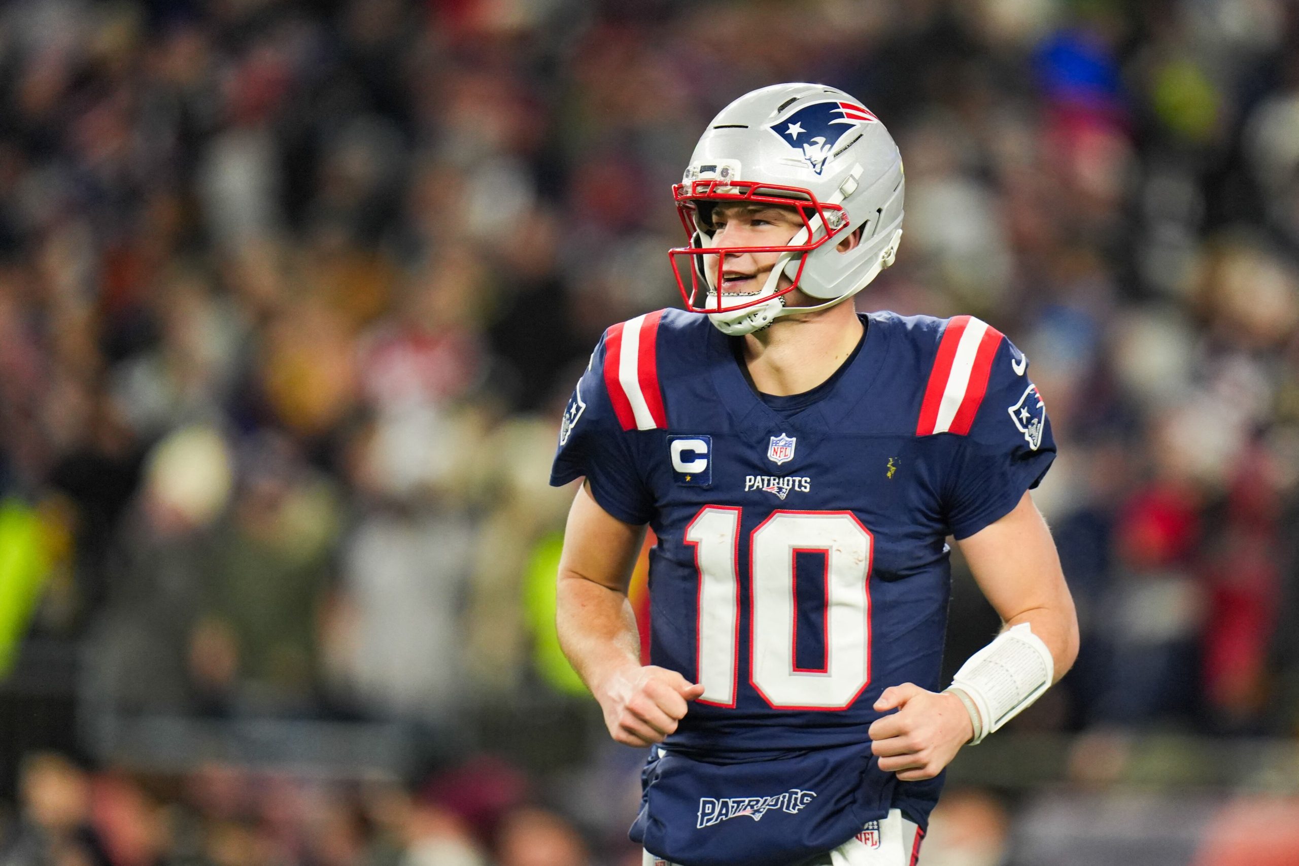 Drake Maye, el mariscal de campo de los Patriots que es fanático de Lionel Messi (David Butler II-Imagn Images)