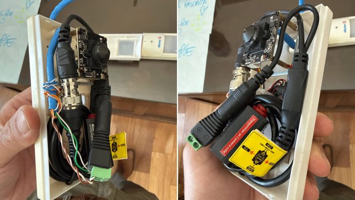 Durante un relevamiento que hizo en marzo de 2025 este medio en las instalaciones que ocupaba Kueider, se pueden observar dos de los aparatos. Estaban disimulados en las carcazas de falsos sensores de movimiento. Esa es otra coincidencia. En el plano subjetivo, un testigo presencial de la instalación confirmó que así se camuflaron los equipos que hizo poner el exsecretario General.