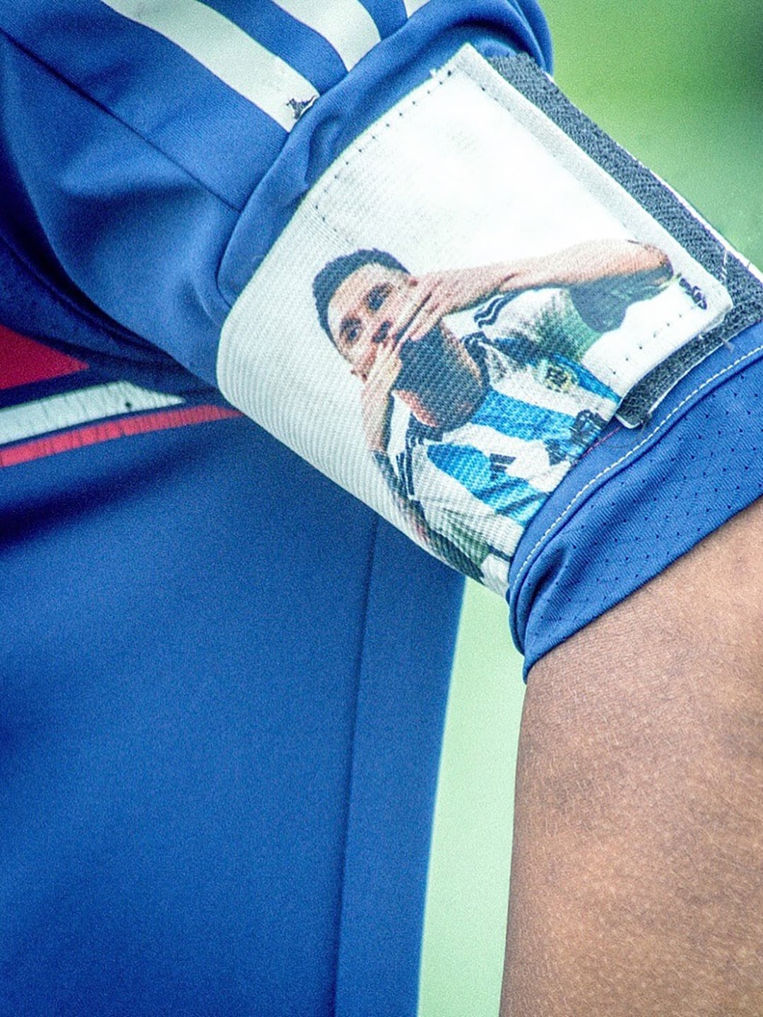 Uno de los jóvenes del club usando la cinta de capitán con una imagen de Lionel Messi (Crédito: leonesderosariofc/Instagram)