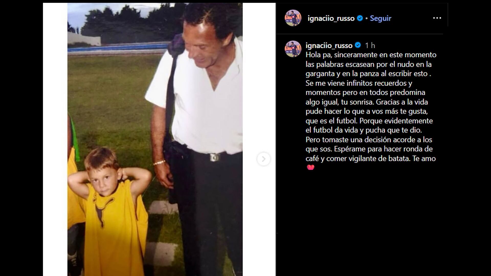 También compartió otro posteo con varias imágenes suyas de niño y adolescente junto a su padre, y un mensaje cargado de emoción: “Hola pa, sinceramente en este momento las palabras escasean por el nudo en la garganta y en la panza al escribir esto. Se me viene infinitos recuerdos y momentos pero en todos predomina algo igual, tu sonrisa. Gracias a la vida pude hacer lo que a vos más te gusta, que es el fútbol. Porque evidentemente el fútbol da vida y pucha que te dio. Pero tomaste una decisión acorde a los que sos. Espérame para hacer ronda de café y comer vigilante de batata. Te amo ❤“.