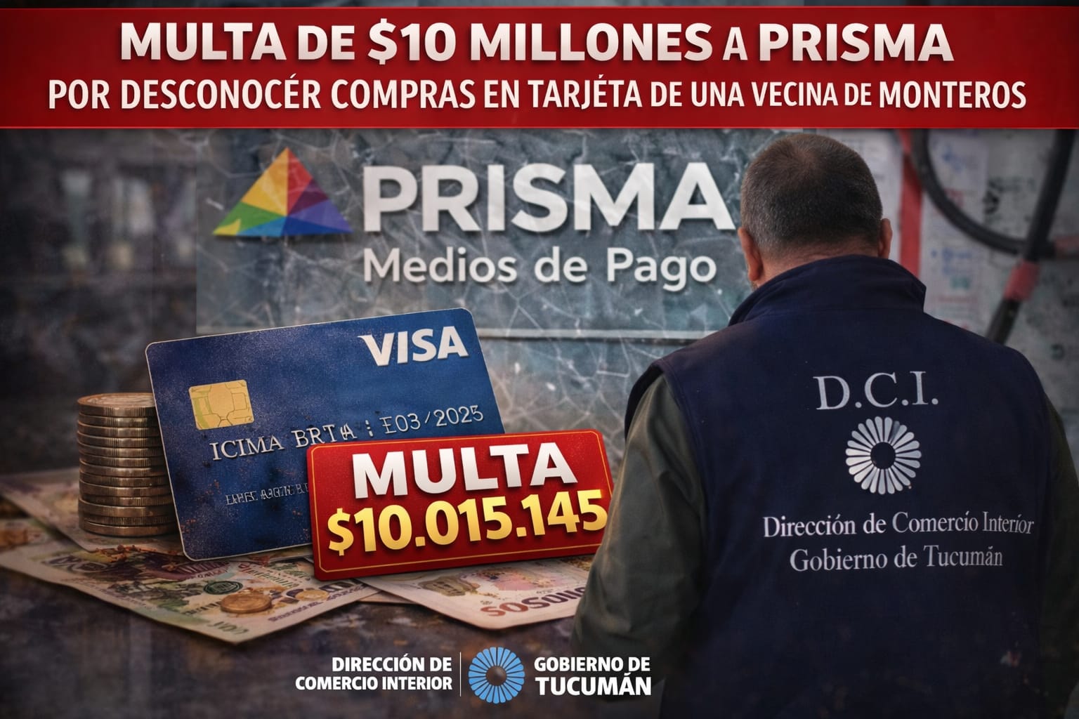 La Dirección de Comercio Interior de Tucumán sancionó a la empresa Prisma Medios de Pago, operadora del sistema Visa, con una multa de $10.015.145,84 por incumplir el artículo 19 de la Ley de Defensa del Consumidor 24.240, que obliga a las empresas a respetar las condiciones del servicio brindado.