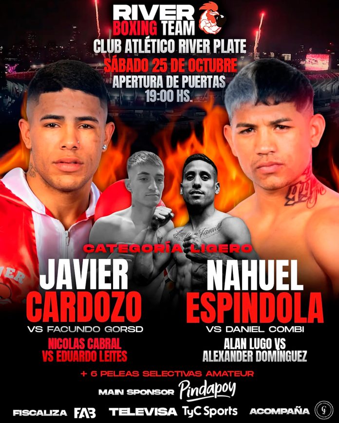 La velada, que dará inicio a las 19 horas, marcará el regreso de dos de los principales exponentes del equipo: Javier “La Pantera” Cardozo, oriundo de Uruguay, y Nahuel Espíndola, ambos con trayectorias destacadas y grandes expectativas para esta nueva etapa. Cardozo, quien ostenta un récord de siete victorias y una derrota, con cinco triunfos por nocaut, viene de debutar con éxito en el equipo riverplatense y será el protagonista del combate principal de la noche frente a Facundo Gorsd, en un enfrentamiento pactado en la categoría ligero. El púgil uruguayo buscará afianzar su proyección internacional bajo el respaldo de la institución.