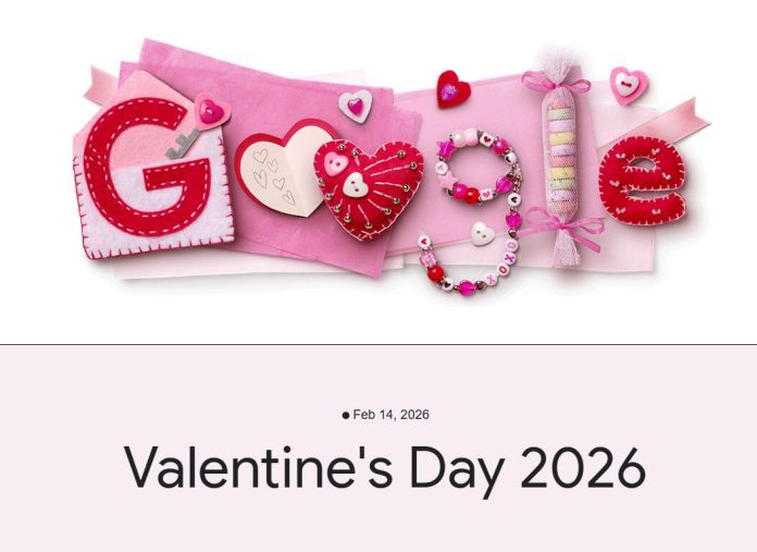 El doodle especial de Google por el Día de San Valentín 2026