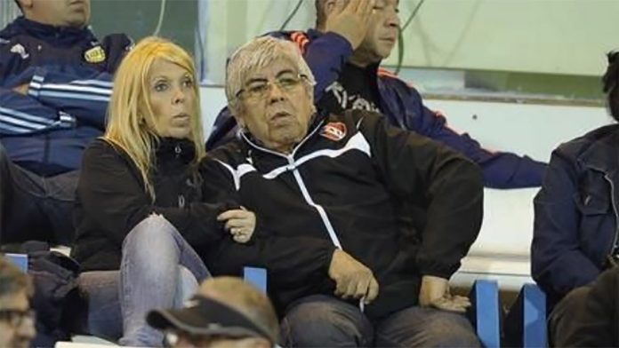 Hugo Moyano y su esposa Liliana Zulet, en la platea del club Independiente
