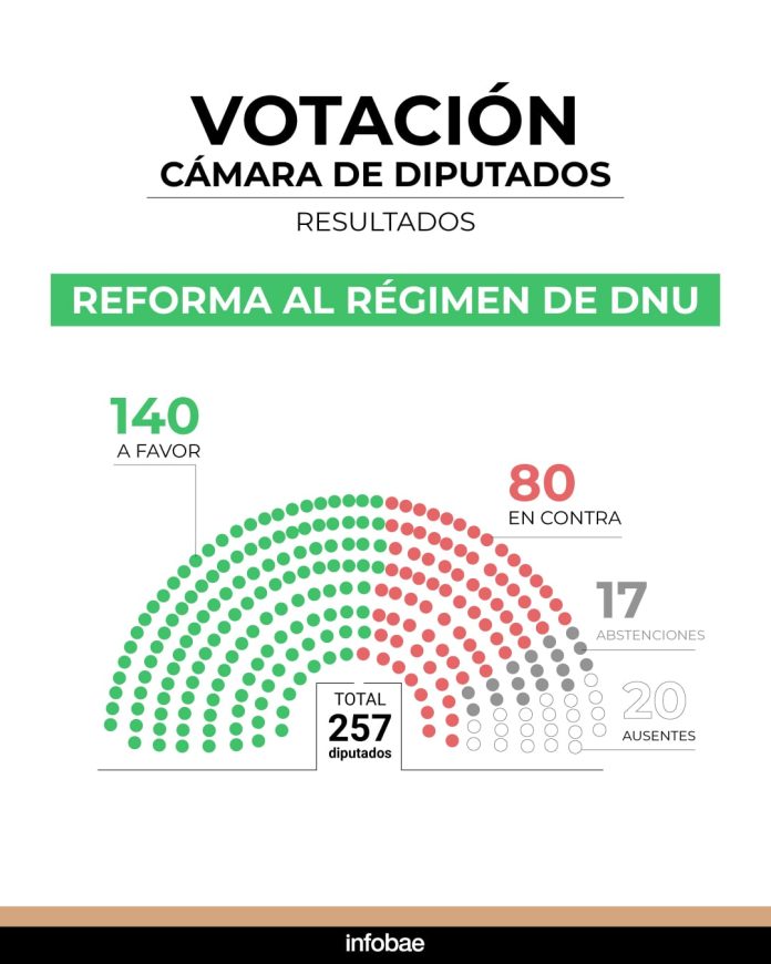 La Cámara de Diputados aprobó el proyecto que cambia el régimen para emitir Decretos de Necesidad y Urgencia (DNU). Sin embargo, durante el tratamiento en particular se rechazó uno de los artículos clave, lo que obliga a que la norma regrese al Senado, donde se decidirá si se mantienen las modificaciones o se vuelve al texto original.